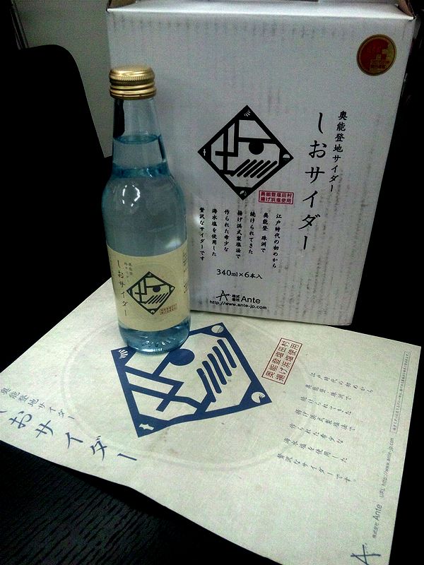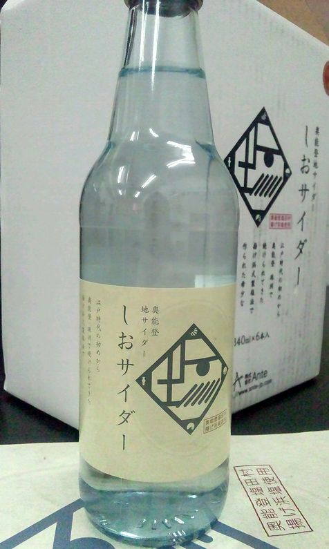 このしおサイダー、奥能登塩田村の揚げ浜塩を使用しており、地ビールならぬ、地サイダーという位置づけのようです。