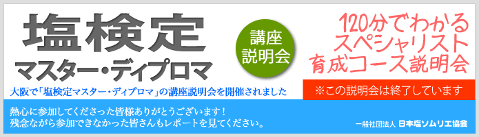 平成23年3月14日(月)大阪で開催された「塩検定マスター・ディプロマコース講座説明会」を開催しました。